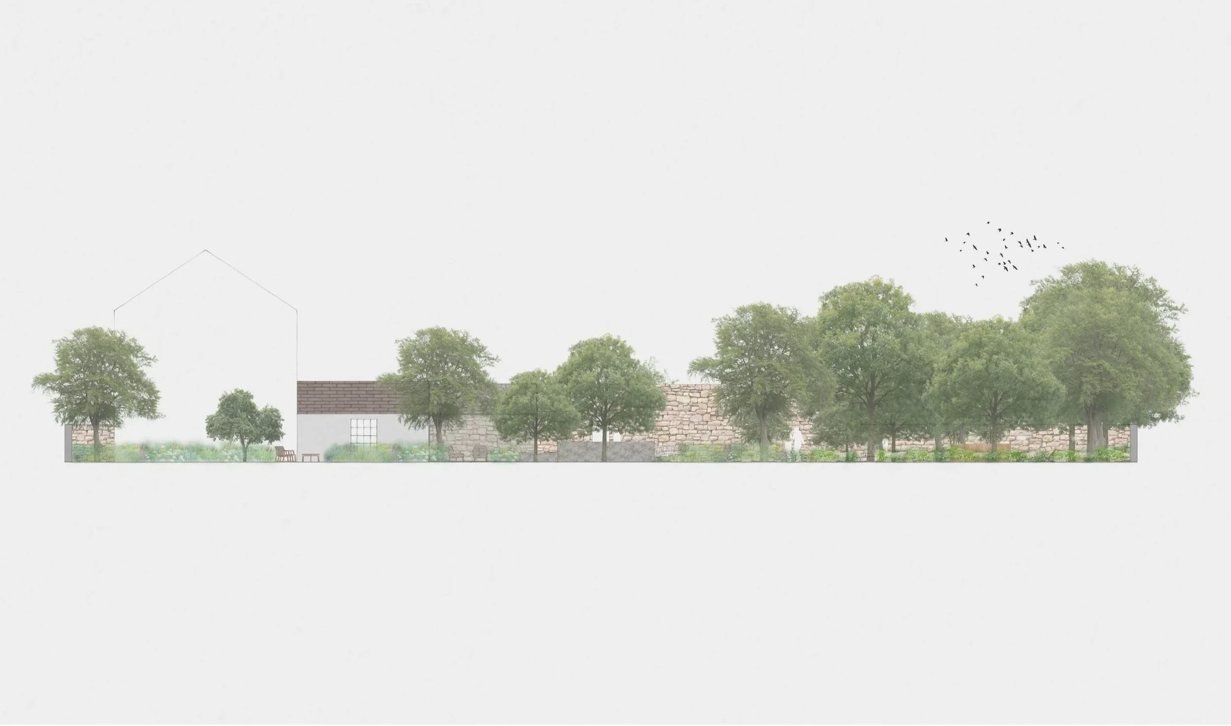 Traditional materials connect the garden to its setting and give it lasting character. Dry stone walls, repurposed stone water troughs, and reclaimed Yorkstone cobbles create a strong sense of place, while ensuring the design feels timeless and enduring.The clients love the outdoors and wanted a design that would allow them to enjoy every part of their garden. The layout includes a large dining terrace for entertaining family and friends, as well as smaller, more intimate areas scattered throughoutβfrom morning coffee spots to hidden benches.